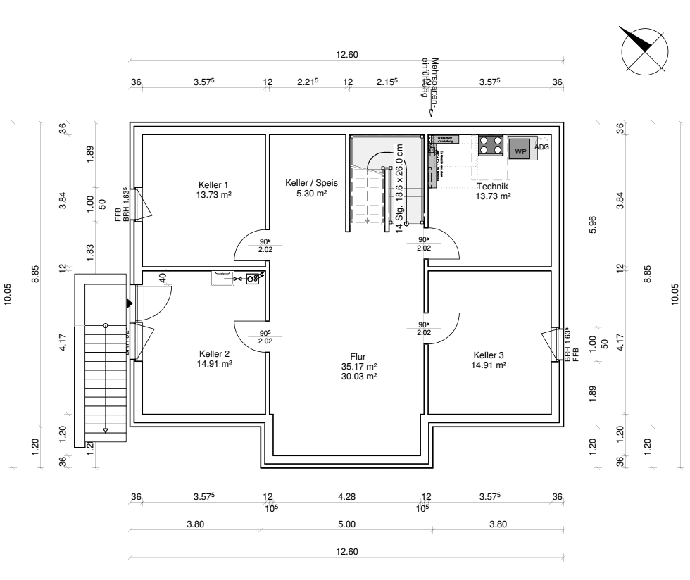 - Treppenmaße könnten ebenfalls knapp werden, so Richtung 3m wäre schon ganz gut mit Podest
