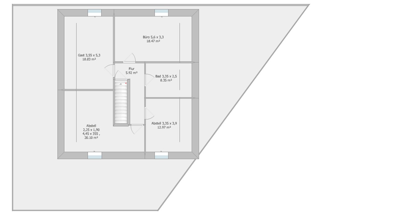 Vom Grundsatz habe ich den alten Grundriss belassen, allerdings ist der Erker nun vor das Haus gerutscht und dort kommen nun Küche und Hauswirtschaftsraum unter.