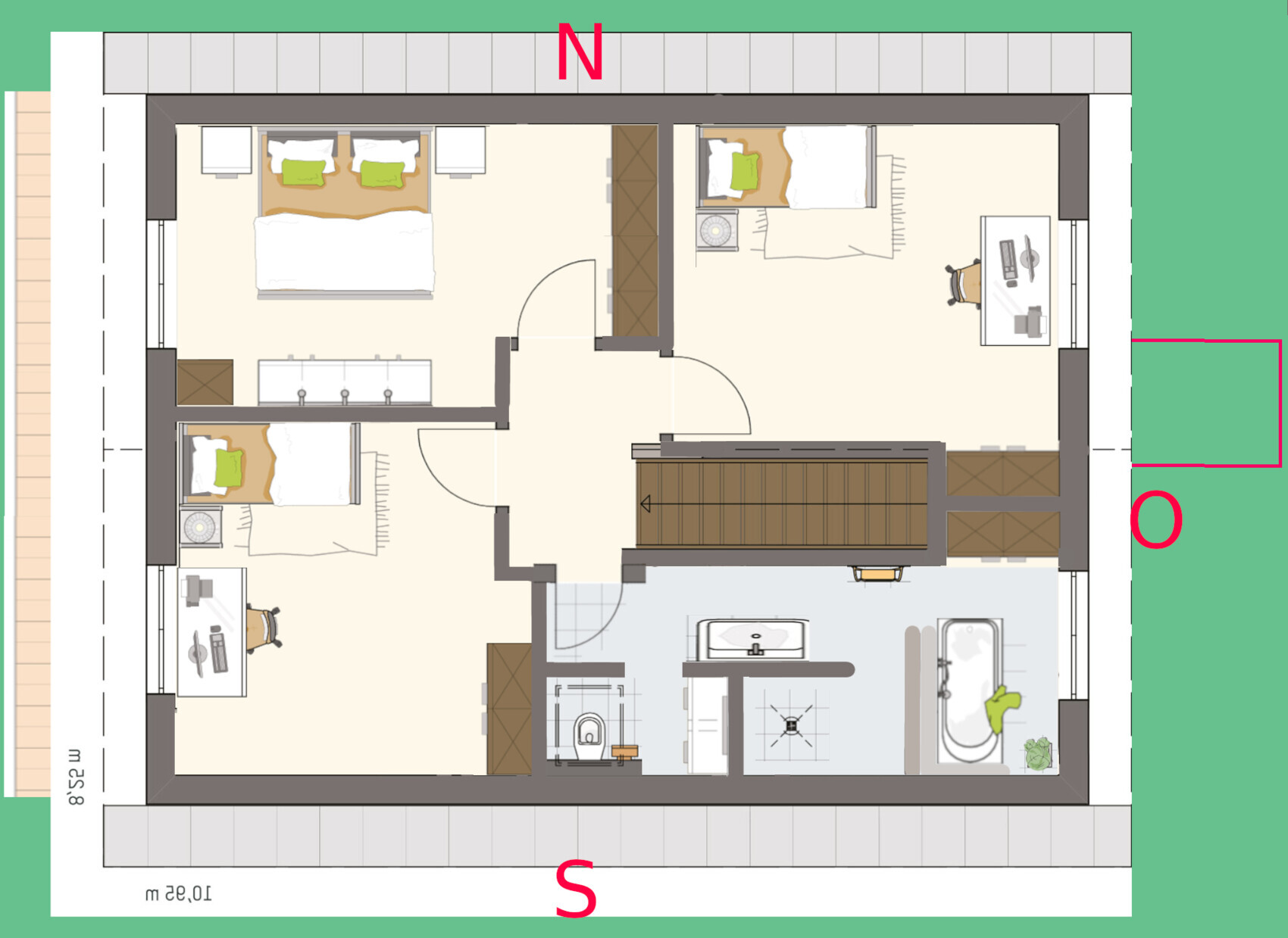 Idee is die nördlichen Wände an der Treppe zu entfernen als Podest mit Fenster, nur blöd zu erreichen?Tu Dir einen Gefallen und sammel Dich, was Du für die nächsten 20 Jahre brauchst. Danach baust Du. Auch hinsichtlich der Ausrichtung außen Grundstück. Willst Du noch Familie gründen bzw bist Du auf Brautschau, dann lass es erstmal. Das wird mit diesem Fokus nicht wirklich etwas, noch sehe ich die ausgewählten Häuser als gesetzt. Die Lebensbereiche sind im EG nahezu qualitätslos. Zweigeteilt mit Einliegerwohnung sowieso. Alles viel zu eng ohne Quality. Schon das Setzen des Hauses nahe Straße ist nicht gut gewählt.Pockrandt12.04.22 03:04