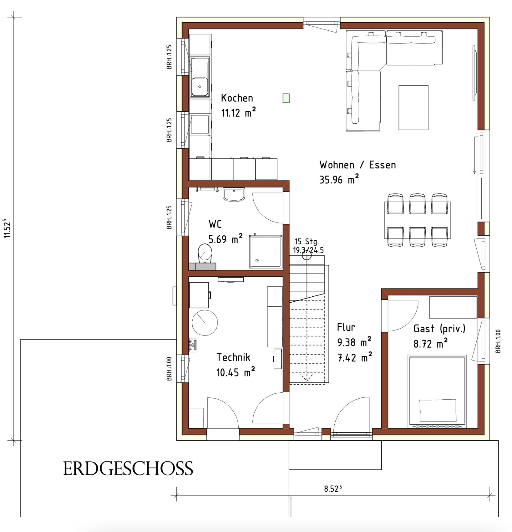 Mir persönlich ist das zu wenig "an der Sonne". Ich lege keinen Technikraum, Gäste-WC oder Gast an den schönsten Platz, der sein könnte im Haus.