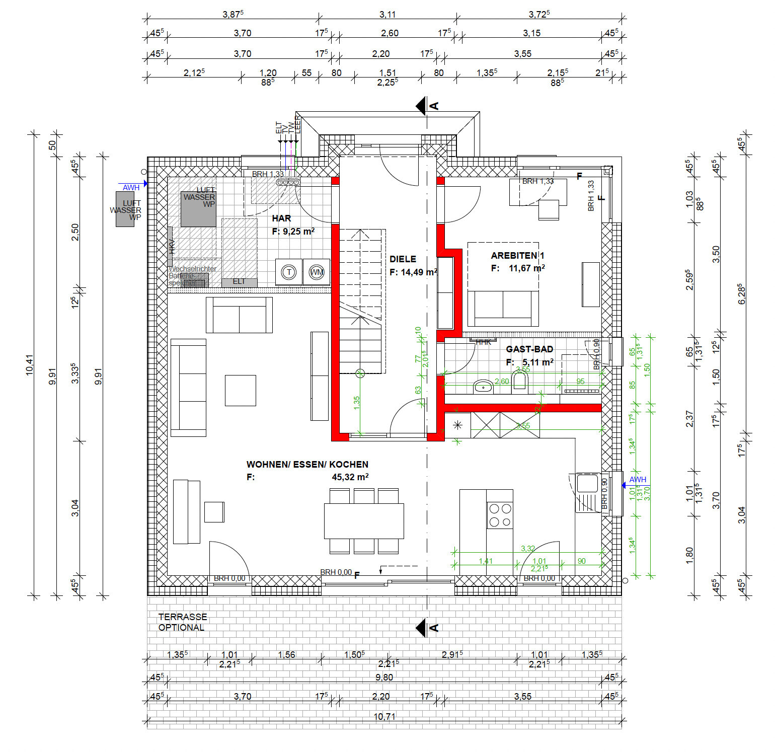 -Der Technikraum muss oben links sein, aufgrund der Position der Hausanschlüsse. Find ich aber auch gut, weil eh Nord-Ostseite.