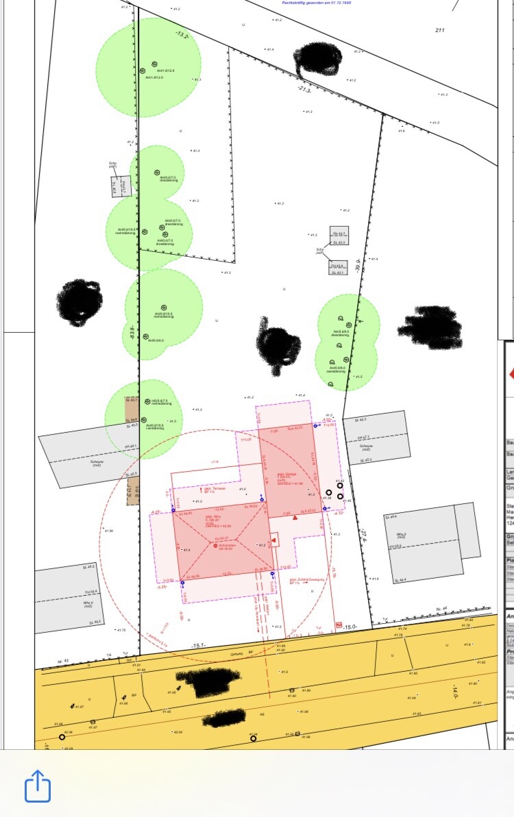 Das gesammte Konzept auf dem Grundstück ist auch nicht schluessig. Warum baut man die Garage nicht an die Grenze? Der westliche Nachbar hat da sehr grosszuegig an die Grenze bauen duerfen. Das Haus koennte dann ja 3 m weiter Richtung Osten ruecken.