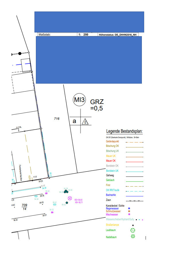 Sieht für mich nach einem Höhenplan aus. Aber frag doch mal, ob er auch die Grundstück-Maße hat für Dich.