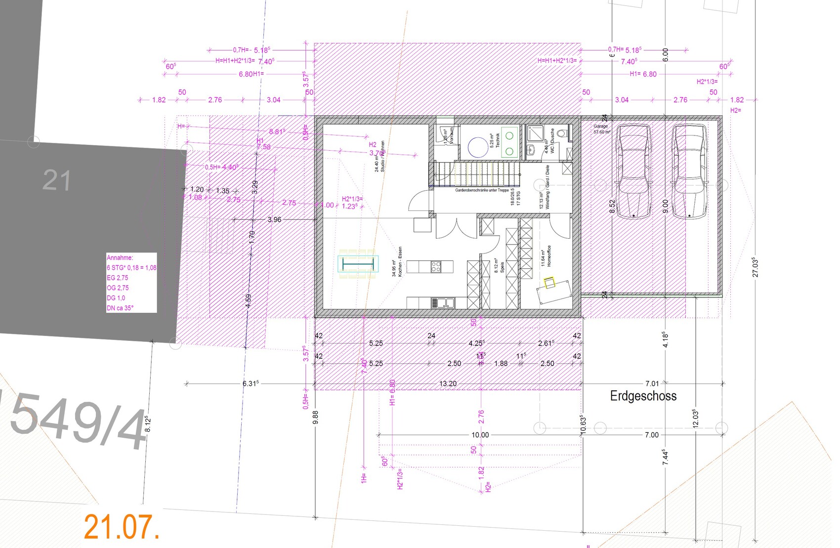 Auch die Abstandsflächenberechnung vom viel zu großen Haus.