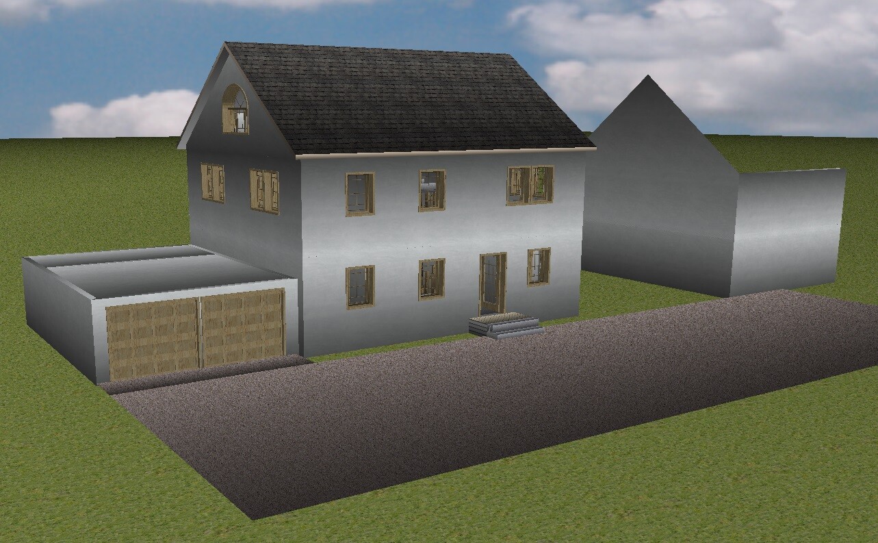 Die Hausaufgabe wäre jetzt, das Haus auf das Grundstück zu setzen. Zeichnerisch.