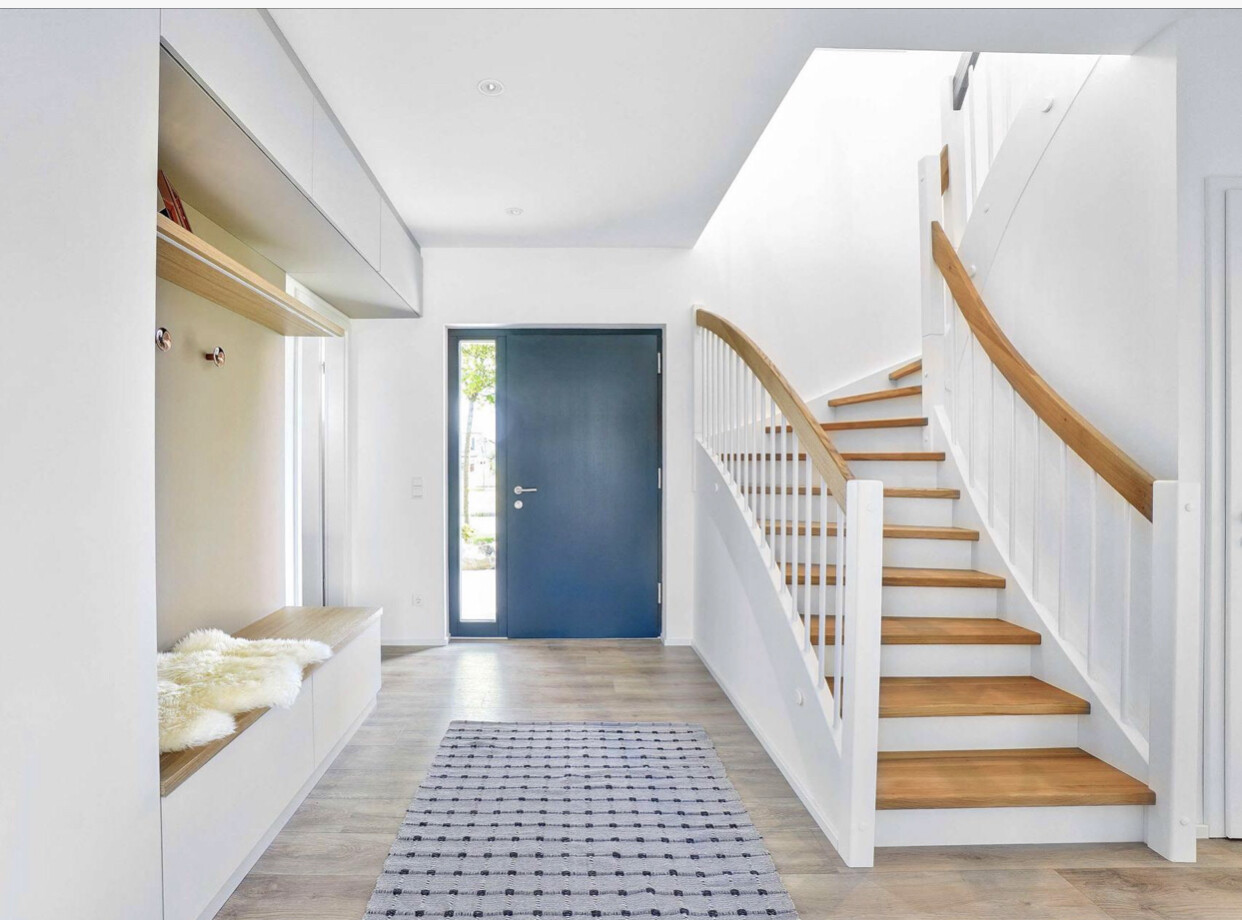 Ergänzung: ausserdem ist in dem Musterhaus eine große Schiebetür zum WZ direkt gegenüber der Haustür.