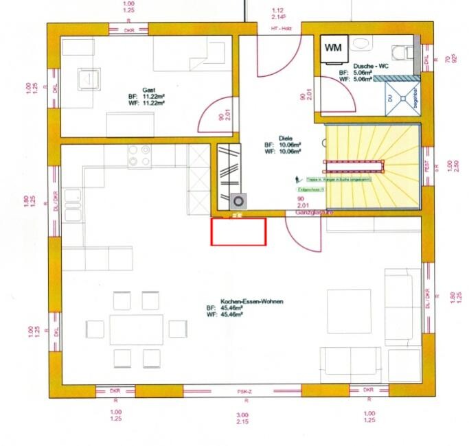 - Türe zum Flur ca. 1m versetzen oder nicht? Hintergrund: ich hätte nach dem Versetzen mehr Platz für die Fernseher-Wand/Bücherregal...Das ist gar nicht so einfach. Mal doch mal den Kamin mit rein. Was soll denn da für ein Gerät hin? Wenn Du die Tür versetzt, wirst Du sicher auch den Aufschlag umdrehen wollen. Dann verdeckst Du den Kamin hinter der Tür und am Ende fackelt Dir noch die Bude ab. Und das wär ja auch unsinnig, den Kamin oder Ofen will man ja sehen. Ich habe das gleiche Problem gehabt und mich am Ende entschlossen, die Tür in die Diele aufschlagen zu lassen. Die Wohnzimmertür steht bei uns eh immer offen und sollte daher nicht im Weg sein. Ich würde wahrscheinlich diese Wand, die von der Küche wie ein Haken ins Wohnzimmer ragt, ganz wegnehmen und dort fett den Kamin einplanen. Den Schornstein oben und unten auf den Flur verbannen. Wenn die Pelletheizung da mit ran soll, muss der zweizügig sein, richtig? Dann würde ich gleich mal noch 20 cm mehr dafür einplanen.