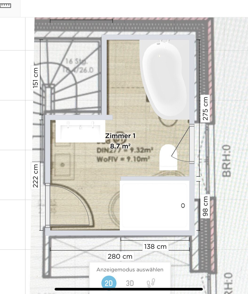 Naja, nimm halt die 163er Länge der Dusche und die knapp ü9qm Raumgröße. Du machst das nicht zum ersten Mal, Du kannst das!
