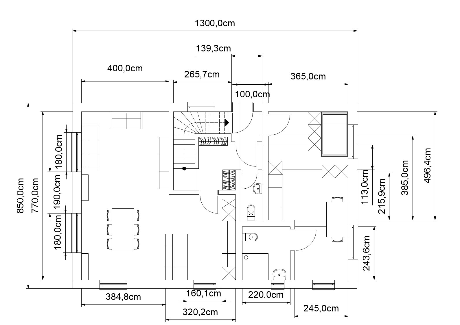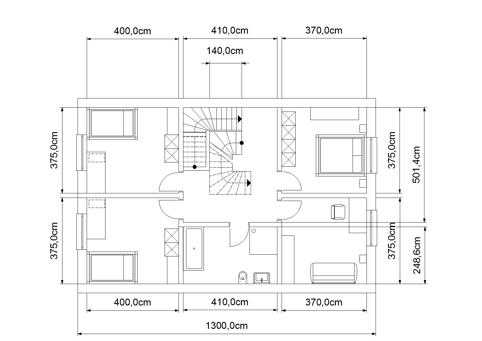 "Bauchweh" macht mir noch der Platzverbrauch von Treppenhaus+Fluren, aber ich habe keine andere Lösung gefunden, die einen gemeinsamen Eingangsbereich mit Kellerabgang ermöglicht, von dem dann die Einliegerwohnung und die Hauptwohnung zu erreichen sind und wo das Treppenhaus in das OG dann nicht direkt hinter der Wohnungstür ist. Außerdem soll man ja auch mit einer recht normalen Treppe in den ausgebauten Dachboden kommen.