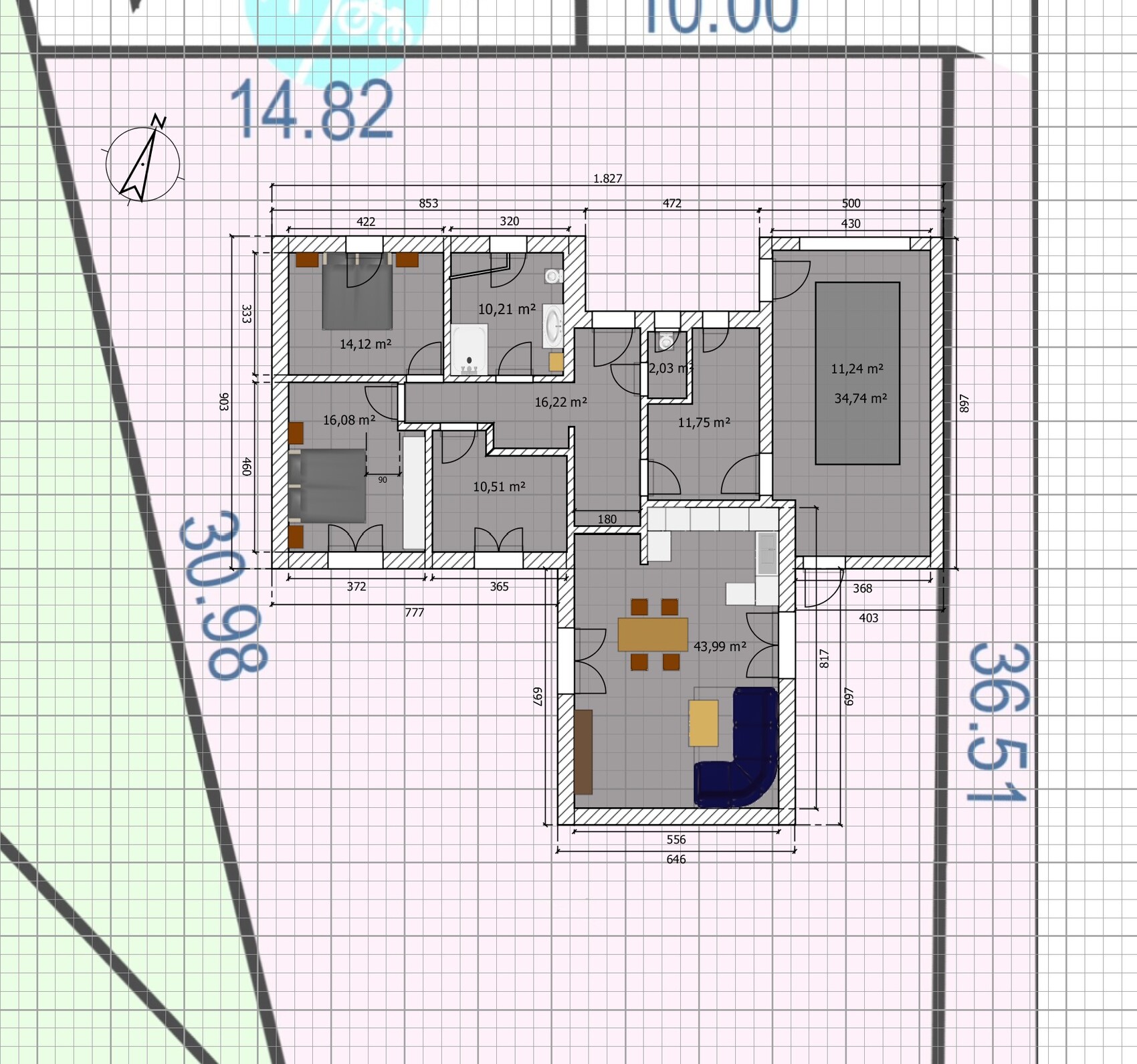 Es ist trotzdem nicht einfach, alle Wünsche, Vorgaben (Grenzabstand, Garage, Sinnvolle Nutzbarkeit der Zimmer) unter einem Hut zu bekommen.