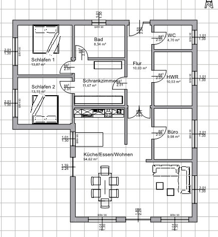 Ich wollte euch nur eine andere Möglichkeit zeigen, die Räume anzuordnen. Küche und Wohnzimmer könnte man tauschen.