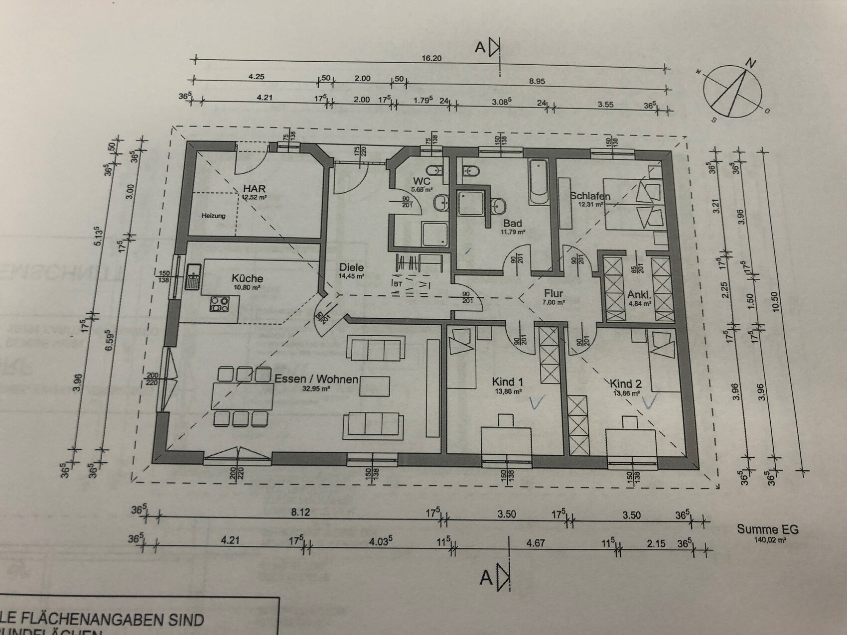 - gewünscht wurden von den Räumlichkeiten her, 2 Kinderzimmer, 1 Schlafzimmer mit vorgelagerter Ankleide, ein Wohn-/Essbereich mit halboffener Küche, Gäste-WC mit Dusche, Hauptbad mit Dusche und Badewanne und Hauswirtschaftsraum.
