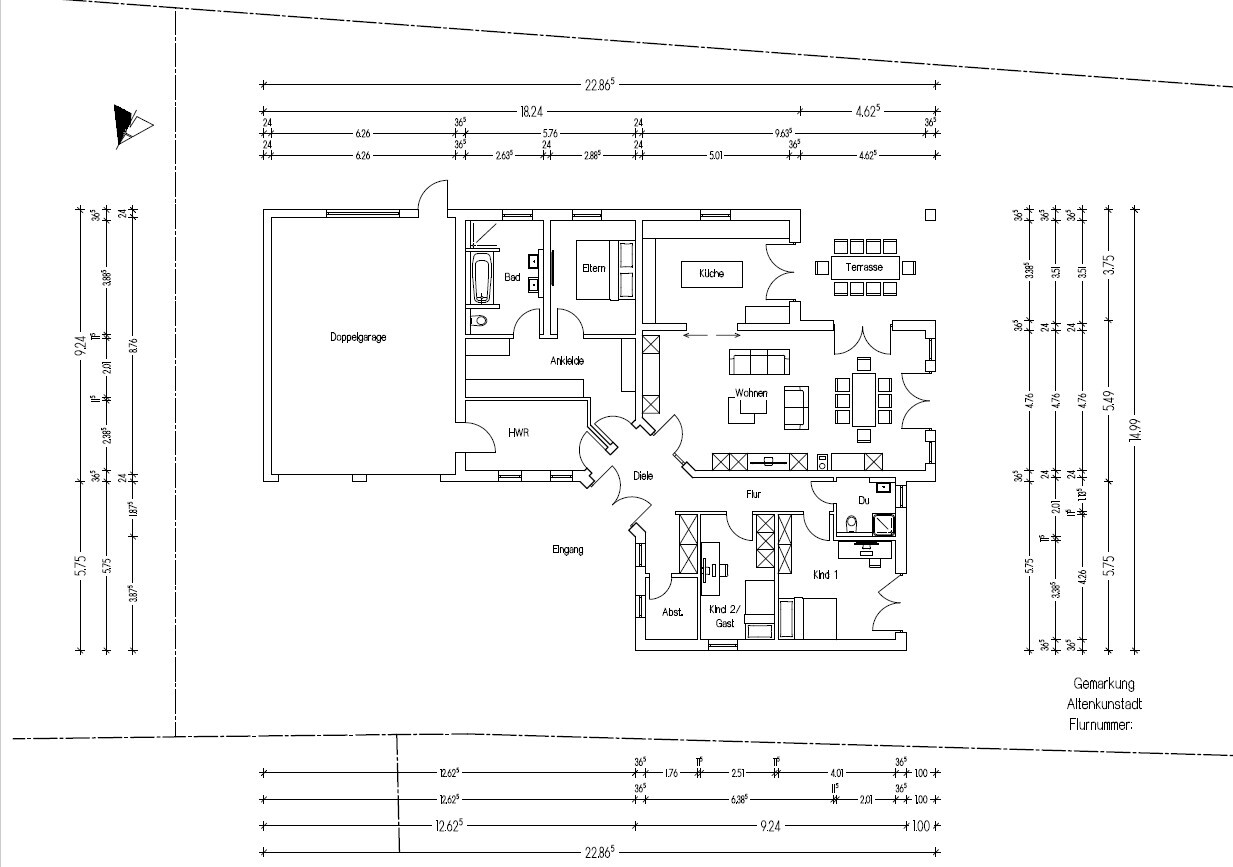 ᐅ Grundriss Bungalow 150qm geschlossene Küche, überdachte Terrasse
