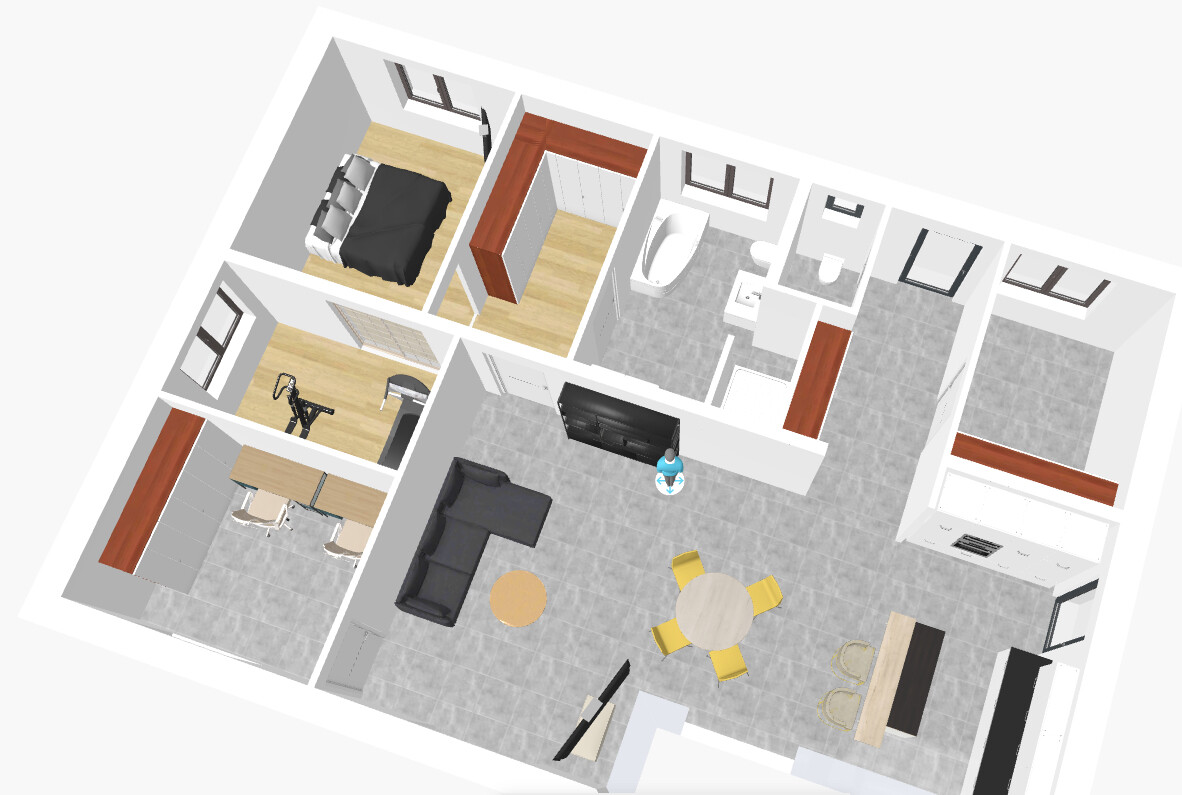 Ich habe jetzt noch etwas modifiziert. Es ist nicht barrierefrei oder -arm, aber man kann da sicherlich bis ins hohe Alter drin leben - inklusive Sportarea.