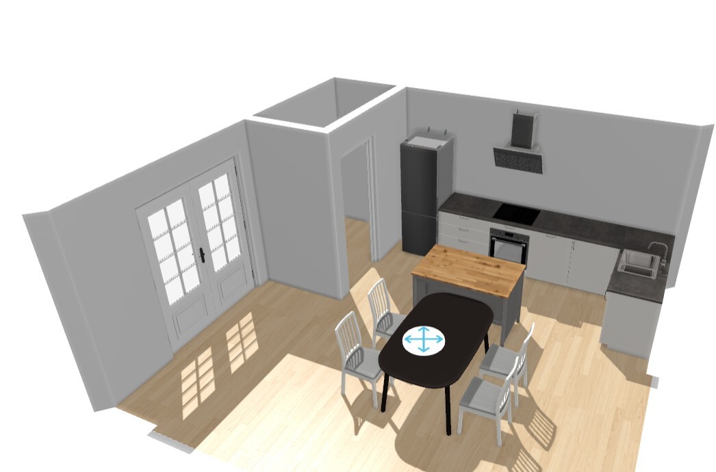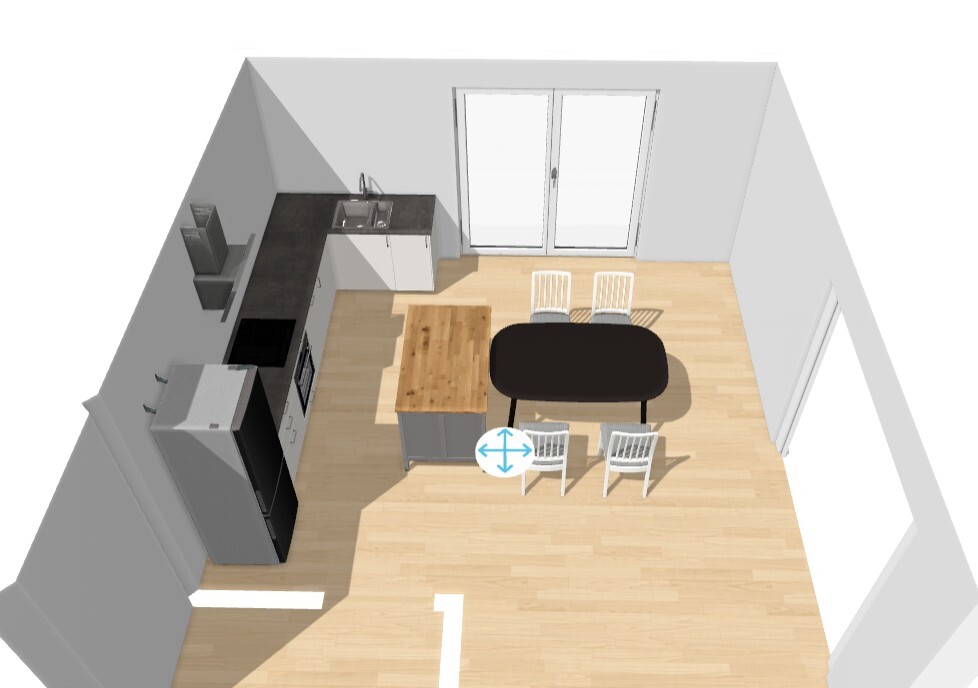Zeichne mal mit Insel einen Esstisch ein. Denke dran Mindestabstand Wand-Tischkante ist 80 cm. Nachdem das euer einziger Terrassenzugang wird, ist das noch zu wenigHabe hier mal Küchenmöbel mit einem Online Planer eingezeichnet. Formen und Farben bitte ignorieren. Esstisch hat hier 160x95 und der Abstand zur Trennwand zum WZ ist gut 1mÄhnliche Themen