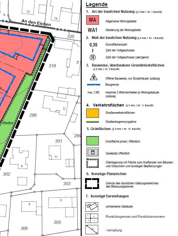 Wird das Grundstück nicht von der „An den Eichen“ erschlossen? Wie kommt man bei Eingangsseite NNO in die Garage?Nein, das lag noch daran, dass tapatalk die Bilder gedreht hat... Grünstreifen liegt eher im Osten. Erschließung natürlich von "An den Eichen". Die Garage sollte davor eine Einfahrt haben die mit einem Carport überdacht wird.11ant schrieb: