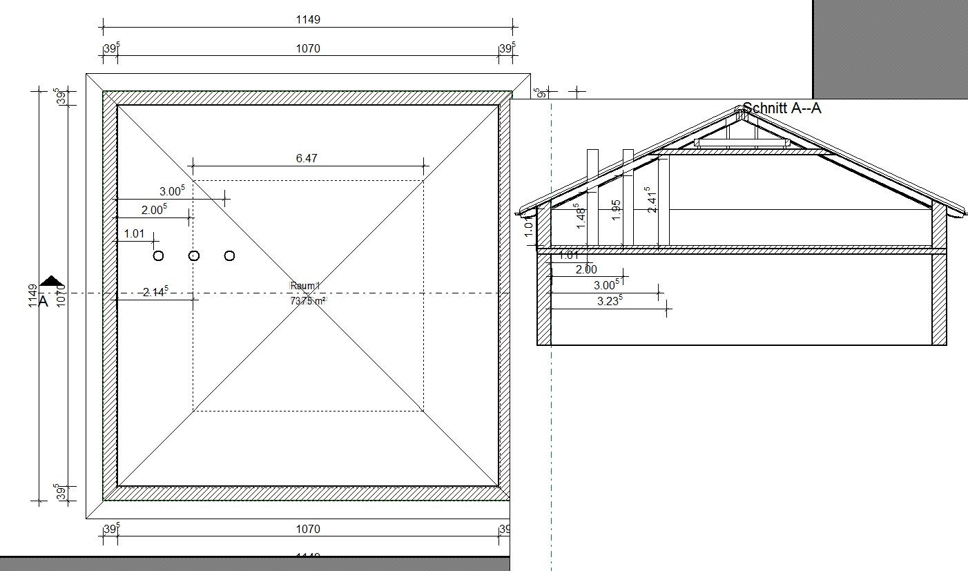 Und, was für Fenster sollen da ins Dach? Nur Dachfenster? Und, wo siehst du 60 qm mit einer Stehhöhe von mind. 200 cm.Ich sehe nur knapp 42 qm.