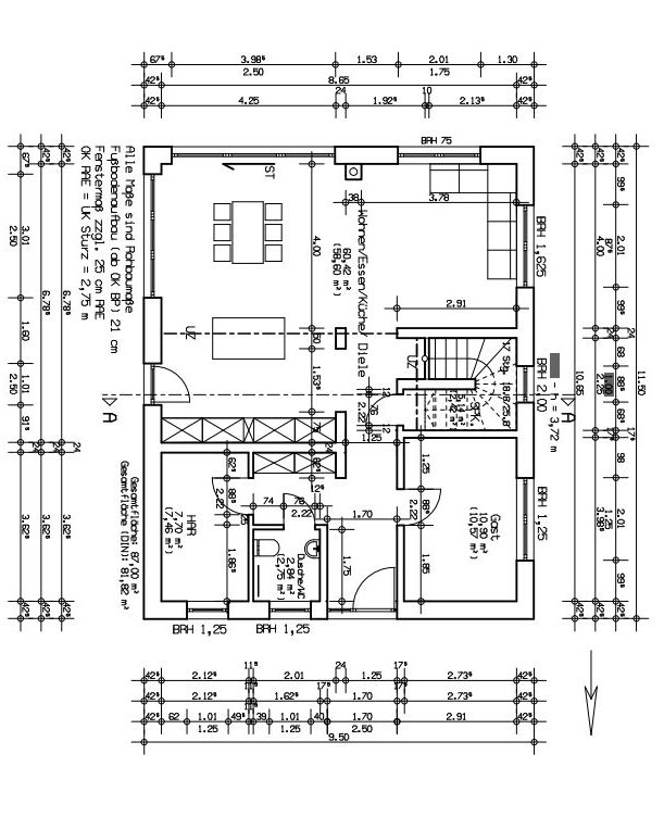 Ich muss unsere Architektin auch etwas in Schutz nehmen. Den Grundriss hatten wir ihr gegeben, da er uns so gut gefallen hat.Daher weht der Wind… 🙄Katja hat schon alles gesagt, gerade Treppe, zu schmale L-Form Wohnen/Essen/Küche, Ausrichtung generell…