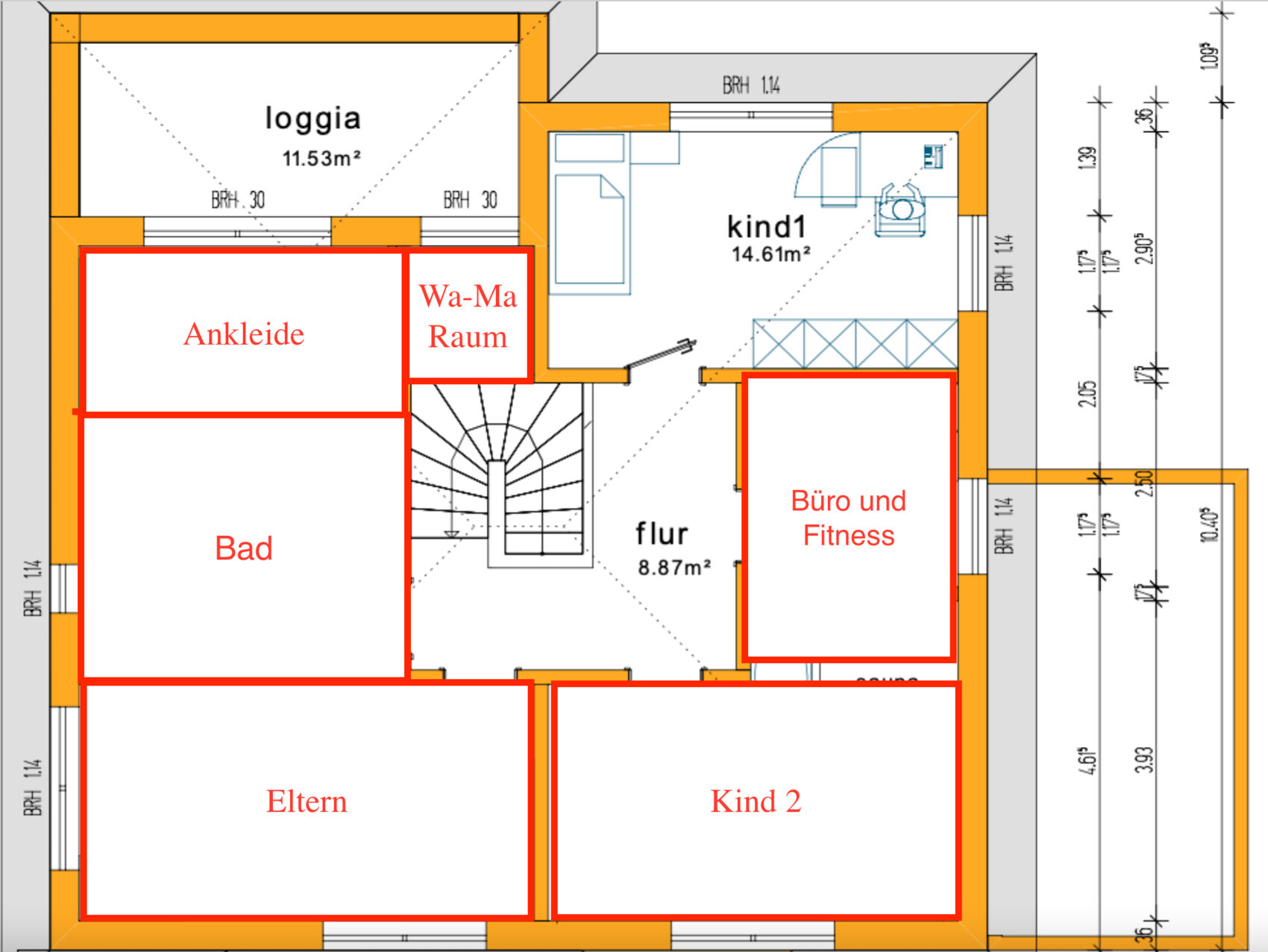Es ging dir auch nur um die Lage und nicht um die Größen im Plan oder? Frage nur, weil der Hauswirtschaftsraum ja aktuell nur ca 6-8qm hatte. Da passt das Büro + Fitness ja nicht rein.