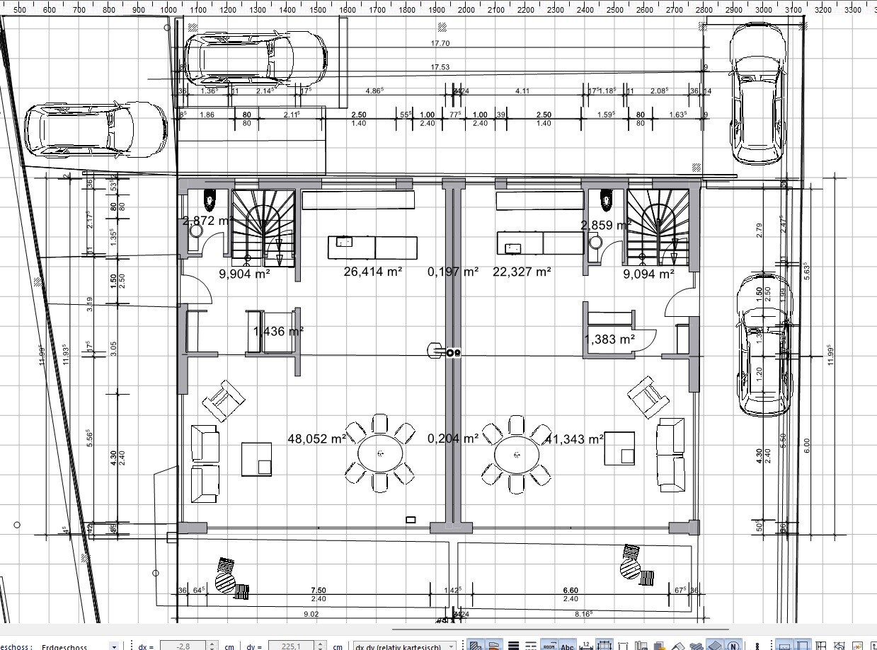 ich würde hinsichtlich der Außenplanung richtig und auch funktionell planen. Man lebt nicht nur im Haus, auch der Ablauf draußen muss funktionieren. Ansonsten bringt so ein Haus nämlich keinen Spaß. Oder wie hast Du Dir das gedacht, wenn zwei Berufstätige morgens ihre Autos erstmal umswitchen müssen? Und die Auffahrt nimmt eh den Spaß am Grundstück. Allein die Pflasterkosten…