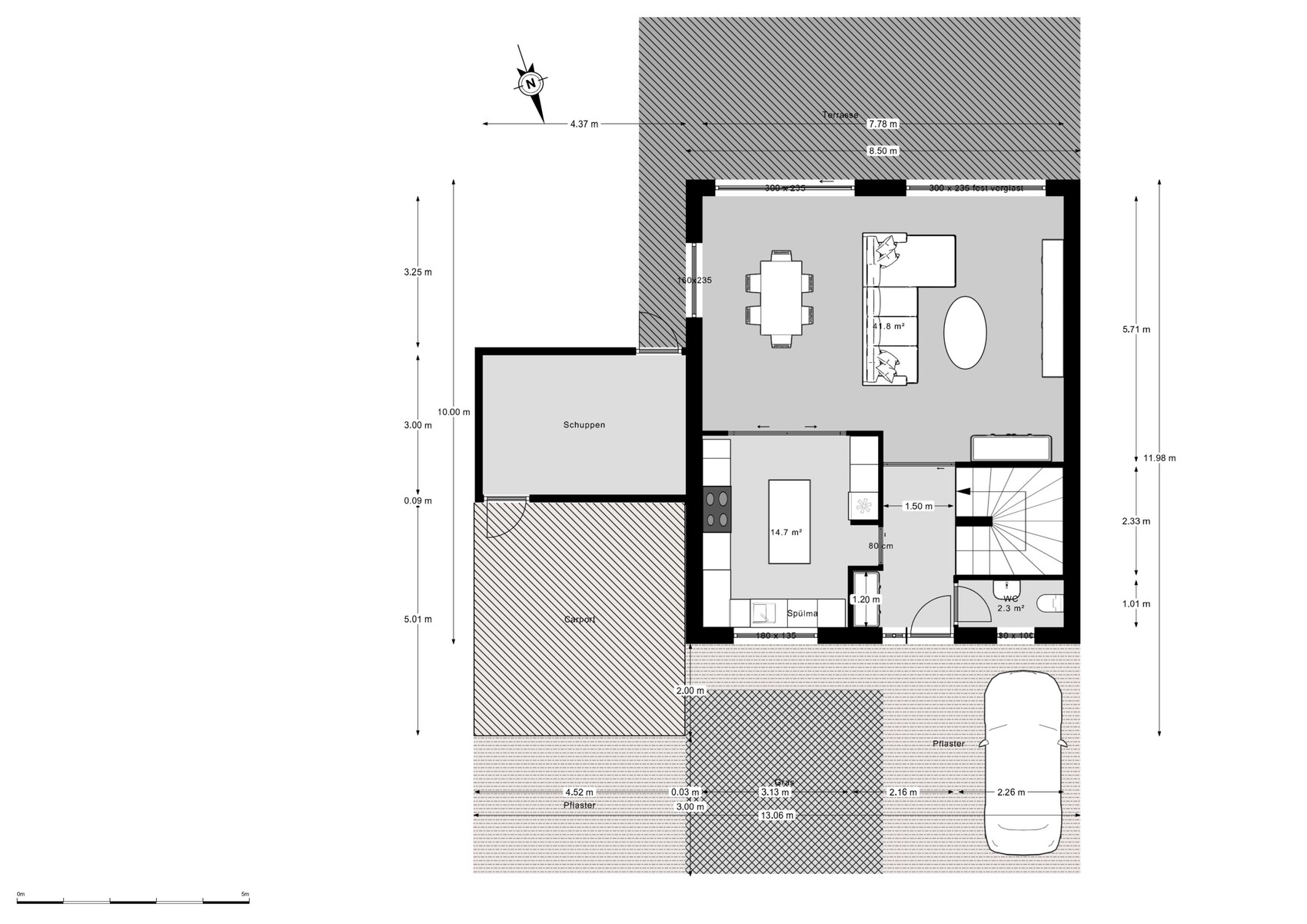 - Der Knick in der Küche im Wohnzimmer gefällt mir nicht ganz, weiß aber nicht wie man das sonst lösen soll
