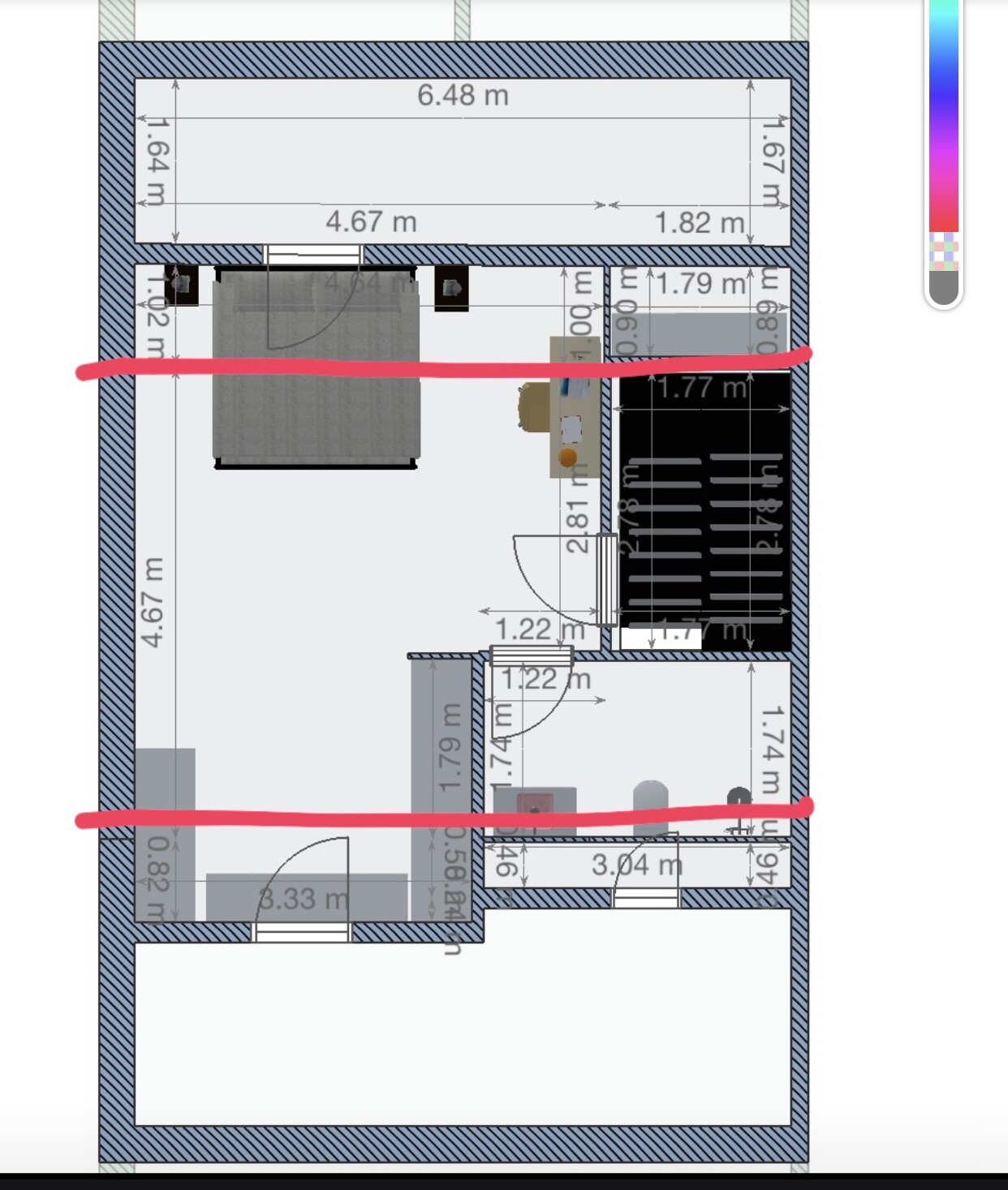 Aber natürlich hilft das: schmeiß meine Bemühungen in die runde Ablage: die Treppe muss dort, wo sich das DG befindet. Das kommt wohl nicht hin.nach meinem Grundriss wäre das DG so aufgeteilt. Natürlich noch nicht allzu viele Gedanken gemacht da es noch nicht ansteht aber Bad und Fenster sollten stehen. Die rote Linie ist die 2,30 Höhe