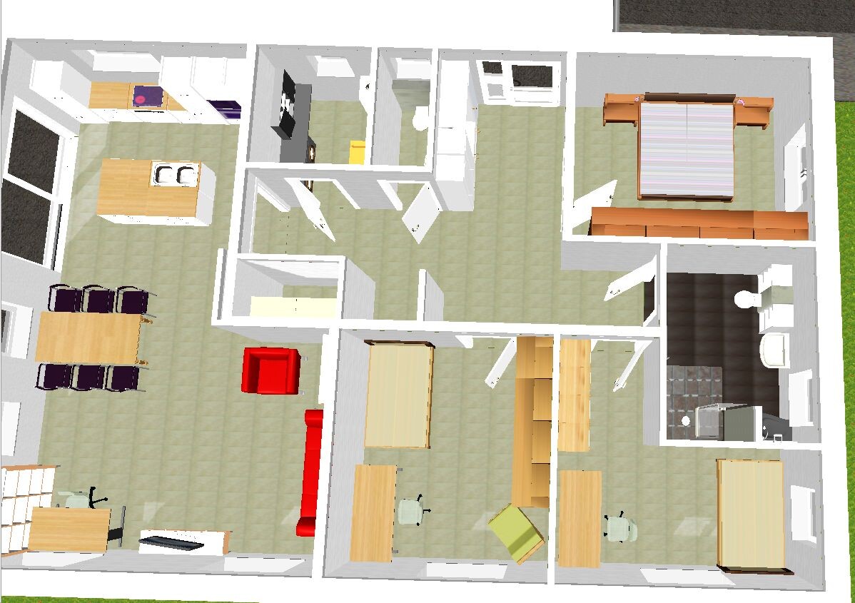 Es soll ein barrierefreier Bungalow sein(ungefähr 131 qm) mit 3 Schlafräume und möglicherweise ein Arbeitszimmer die hier realisiert wurde. Vorher war ja so, dass anstatt Arbeitszimmer eine Küche(aber etwas größer) gab und das Wohnzimmer etwas größer war.