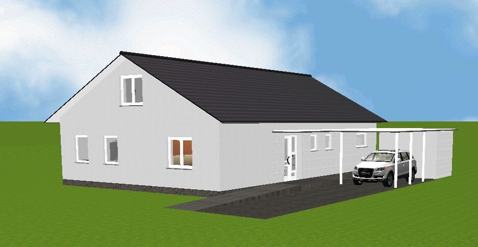 - Carport mal so eingezeichnet, dass man seitlich auch den Rollstuhl ranfahren kann und mit dem Rollstuhl auch zur Haustür hochkommt, also Wege als entsprechende Rampen.