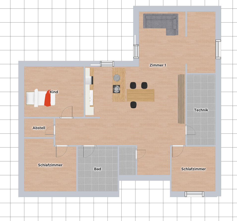Mittlerweile gehe ich nicht mehr ins Detail - Skizzen können von Bauherren meist nicht gegriffen werden, deshalb mit einem "Schnellen" Programm. Fenster hab ich schon zum Teil nicht mehr eingebracht, genauso wie Beispielmöbel etc.