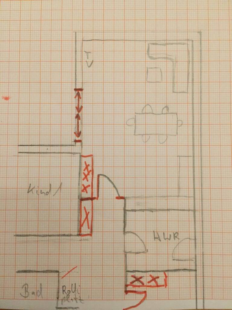 Jetzt hat mir 3. Version aufgefallen [emoji6] . In dein Version, die Tür zwischen 60er Hochschränke und Garderobe setzen.