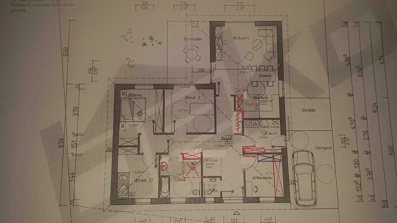 Vielleicht findet sich ja doch noch die Möglichkeit den Winkelbungalow etwas anders zu gestalten, so dass die Carportbreite größer wird und im Inneren manches noch rollstuhltauglicher werden kann.