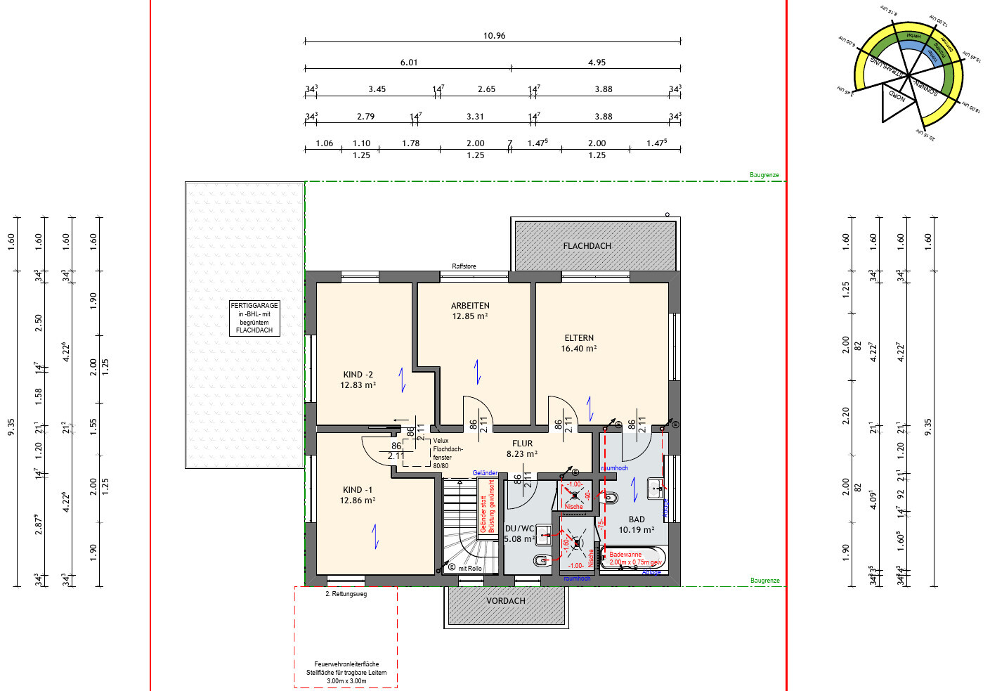 Aber am größten ist die Umstellung oben rechts mit dem Erker. Großes Fenster von 2.50x1.50m, aber dann halt feststehend - und deswegen mit Raffstore geplant.
