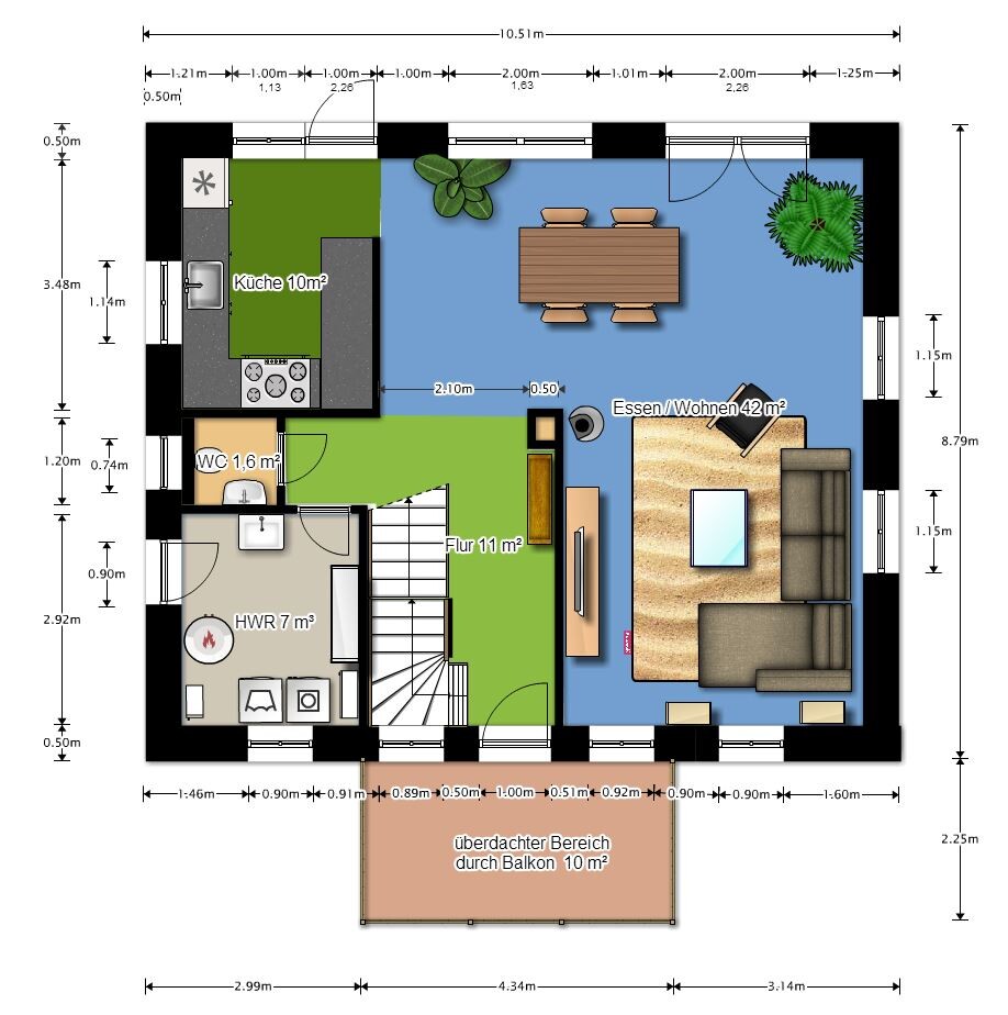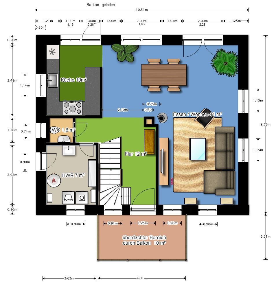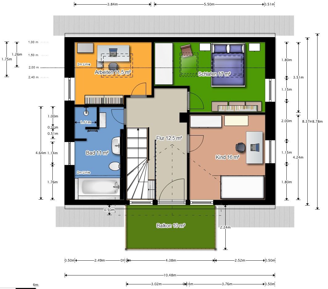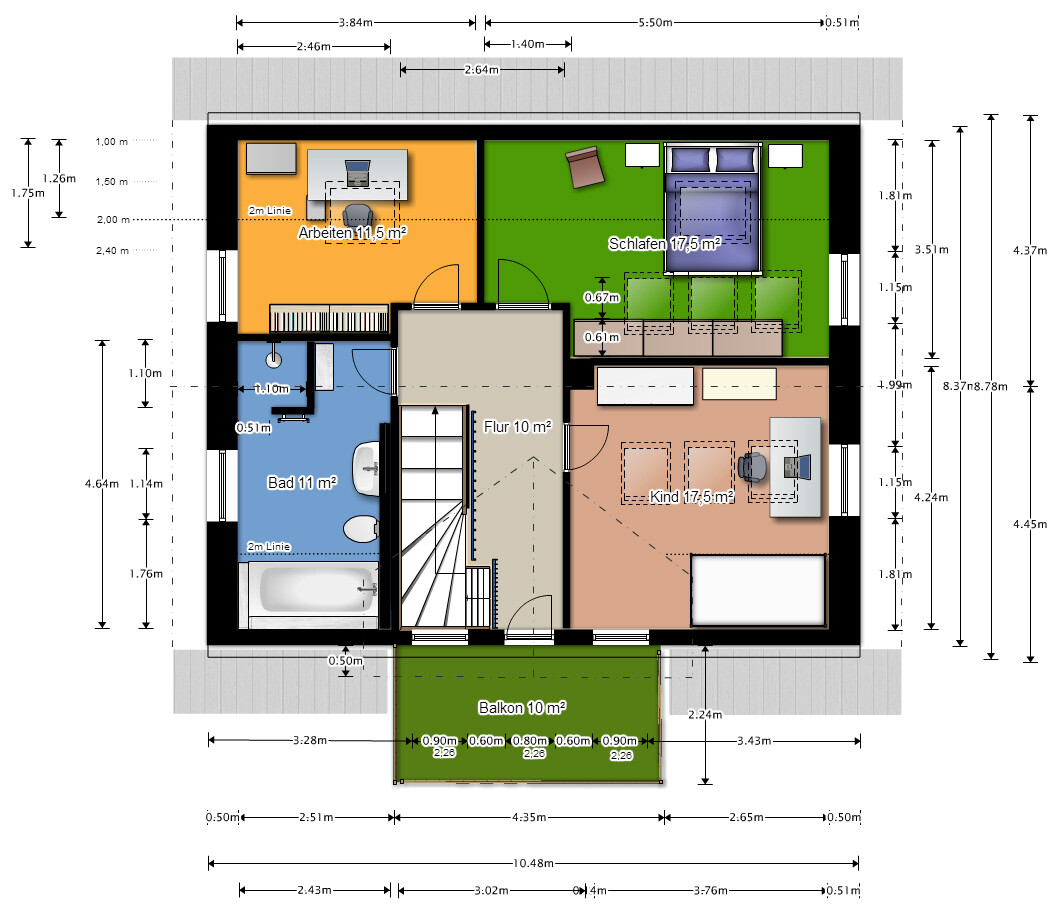 Treppe ist nun 3,50 m lang und zusätzlich über Eck und die Loggia wurde durch einen Balkon ersetzt. Damit könnte es jetzt in die Detailplanung bzw. zu einem richtigen Grundriss kommen