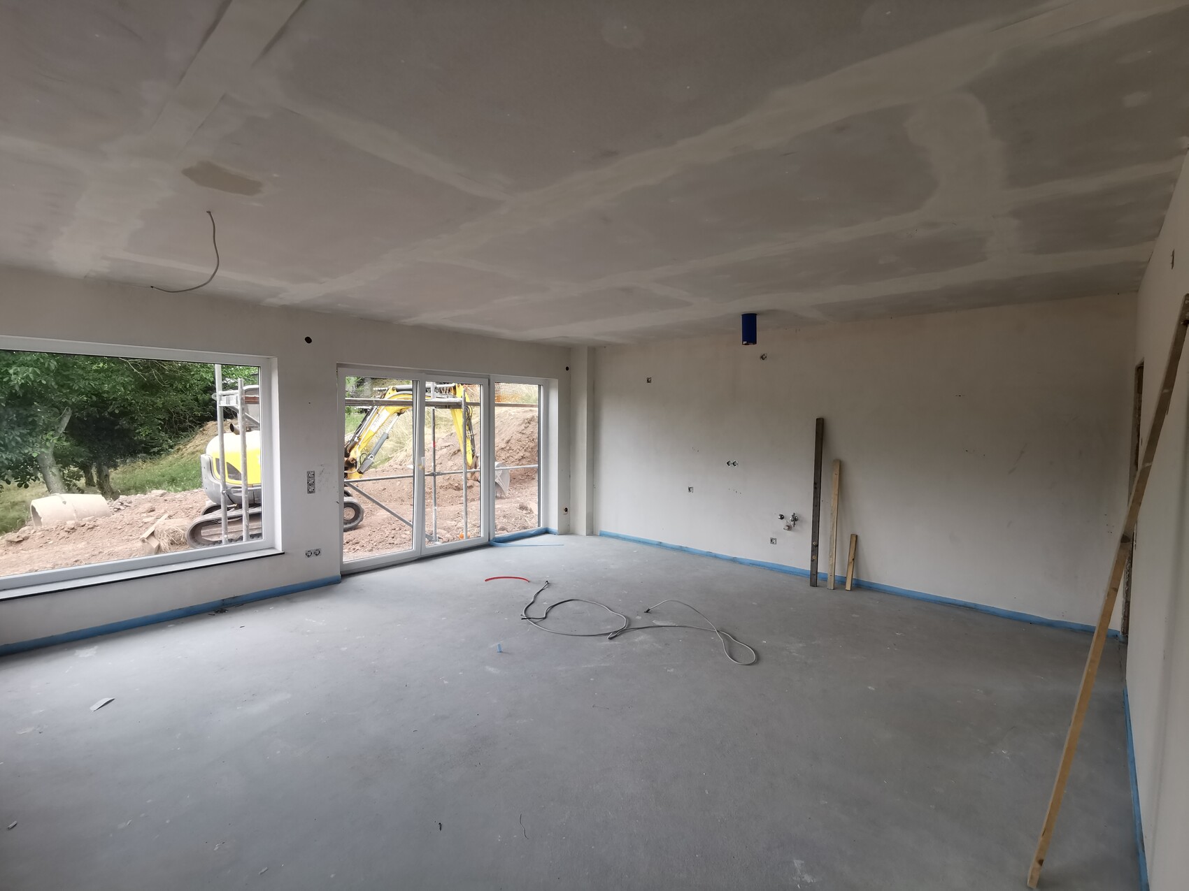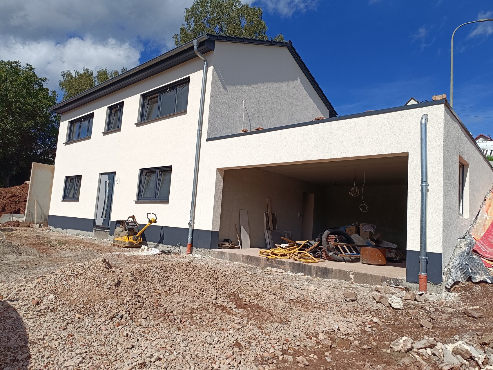 Hier war schon der Maler am Werk und hat uns den gewünschten Cappucino-Ton ans Haus gepinselt.