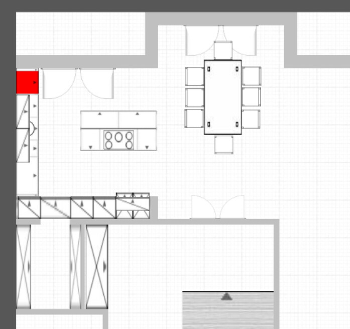 mir wäre die Zeile in der KFB Planung planunten von der Optik zu lang, ich würde auf den Hochschrank planrechts vom Side By Side Kühlschrank verzichten. Planrechts vom Side By Side Kühlschrank Trockenbau, sodass er mit der Wand planoben abschließt. Wenn der Trockenbau dann etwas tiefer wird, Dekofächer mit Beleuchtung einbauen.
