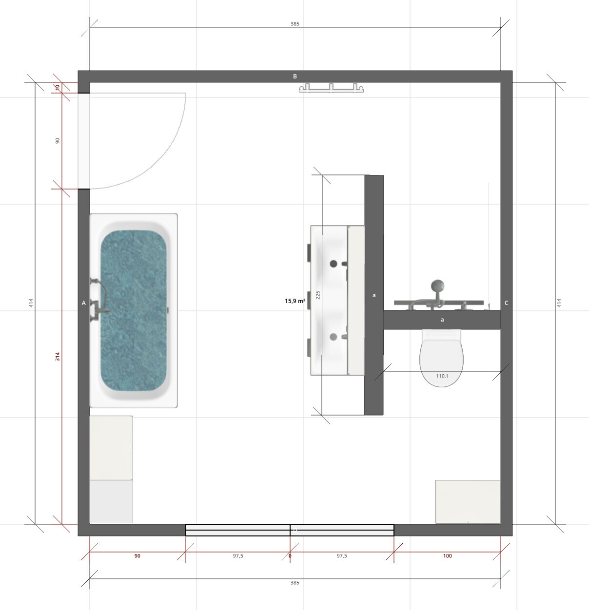 Was mir außerdem direkt aufgefallen ist, die T-Bad Variante nimmt relativ viel platz weg. Ich habe aber auch die Dusche großzügig bemessen. (2,1m x 1,1m) Wenn ich mir mal unser aktuelles Bad anschaue dann stört mich vor allem eins, wir haben zu wenig Schränke wo man etwas verstauen kann.