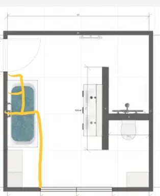 Die Wand ist 3,14 m die am T nur 2,25 m. Das in Summe die Wände gleich lang sind ist schon klar. Nur eine schöne Badmöbelwand passt besser an die lang Wand.
