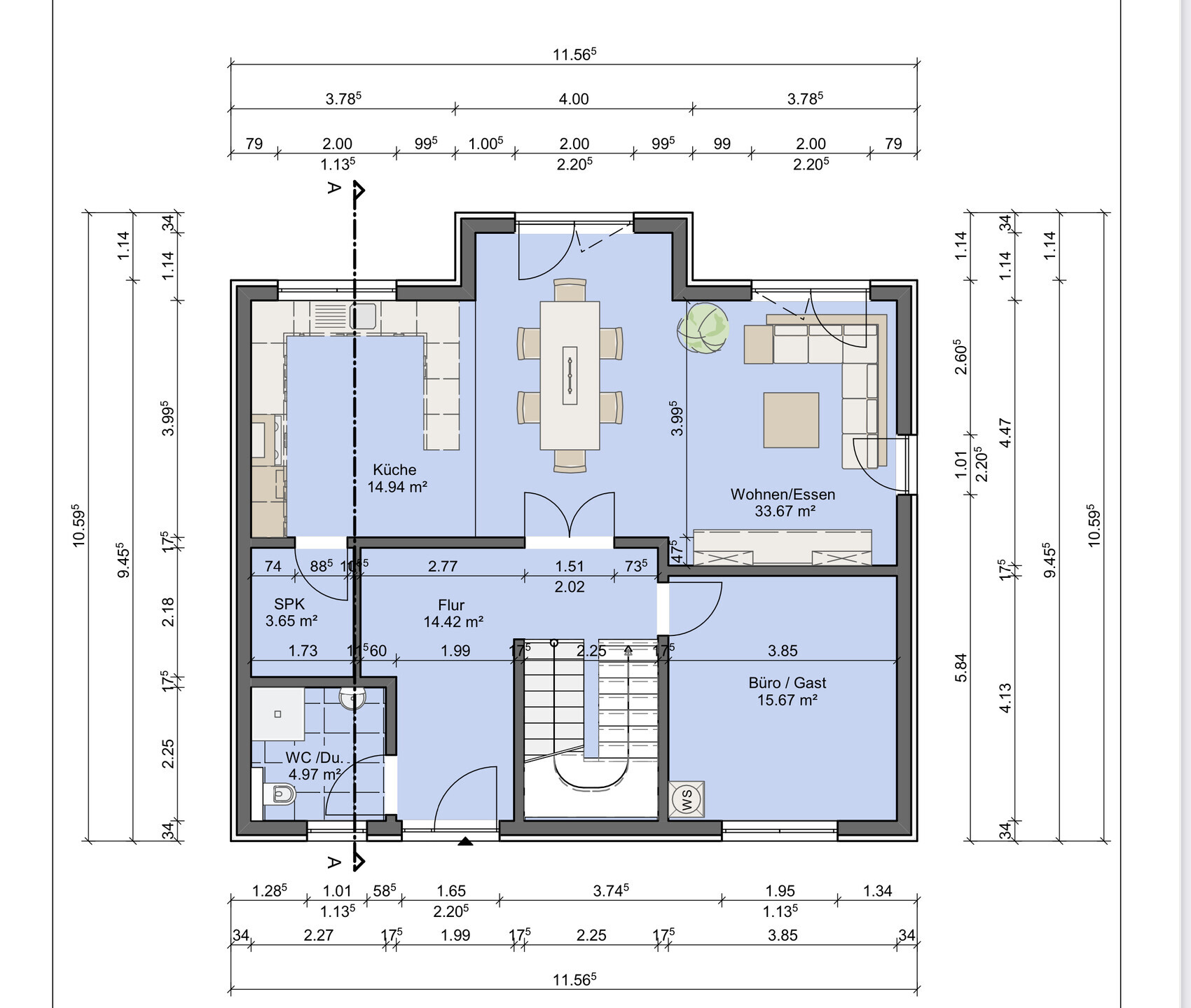 Küchentür in Sichtachse zur Eingangstür, Kücheneinrichtung ordentlich definieren und keine Platzhalter verwenden, ordentliche Fenster im Keller planen. Bei Wohnräumen gehört auch Tageslicht, kein Kasemattenblick.Danke für dein Feedback!