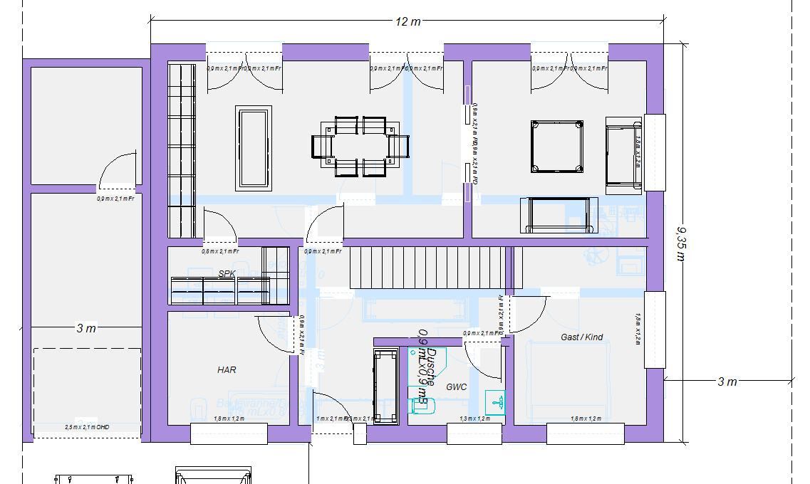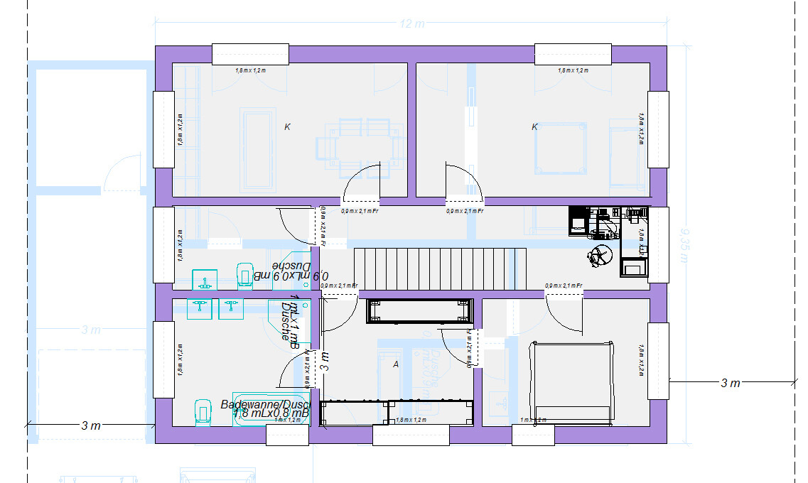 Ok, anderer Standard als Skizze. Fenster und diverse Einrichtung muss man sich selbst ausdenken. Verschleiß ist beim TE sonst zu hoch. 😉Wäre nett, wenn jetzt nicht sowas wie "Hilfe ein Erker geht gar nicht" kommt. Den kann man Notfalls auch weglassen. Das sind nur Denkanstöße zum selbst Verfeinern.