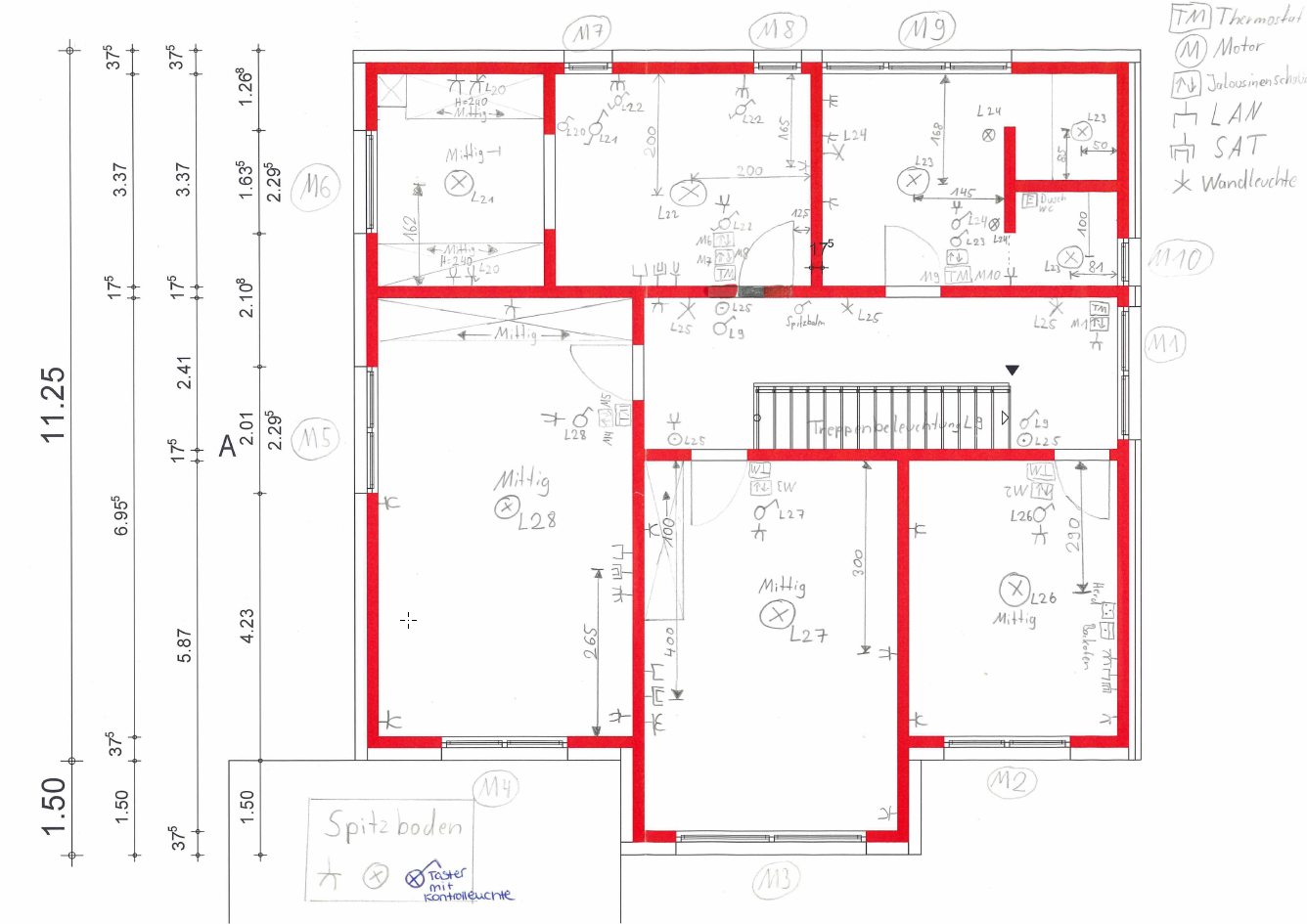 Wir mussten alle Stemmarbeiten selbst übernehmen, einen Meterriss anbringen und markieren, wo alles hinkommen soll. Dabei ist mir aufgefallen, dass Haustechniker und Elektriker häufig bevorzugen, Aufputz zu arbeiten und sagen: "Ja, das kannst du dann verkleiden." Zum Glück habe ich alle Aufputz-Arbeiten verboten und die Stemmarbeiten selbst durchgeführt. Trockenbau dauert länger und kostet mehr als ein paar Schlitze in die Mauer zu machen. Ich kann nur empfehlen, jede Vorwand- und Trockenbau-Arbeit zu vermeiden. Hier ist oft Eigeninitiative gefragt, da die Firmen das nicht von selbst vorschlagen.