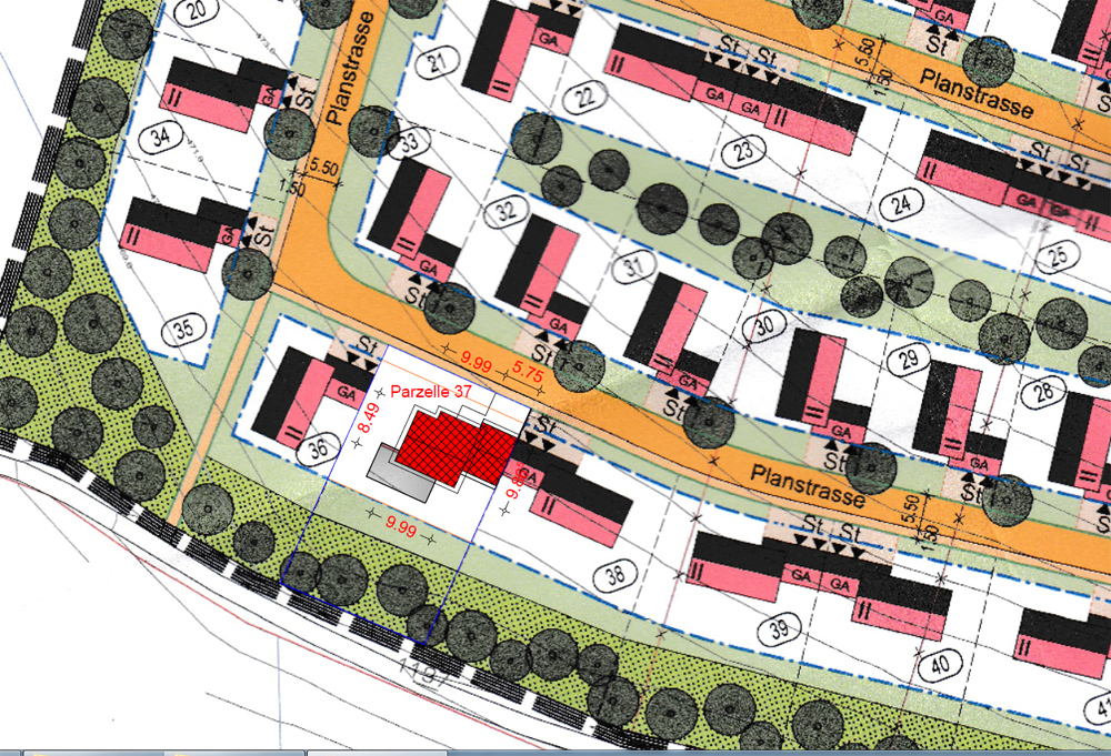Im Anhang der Lageplan sowie ein Bild vom Erdhügel aus wo das Haus hinkommt mit Blick nach Süden.. Aktuell werden die Straßen gebaut - die Erschließung dauert ca. noch 2-3 Monate.