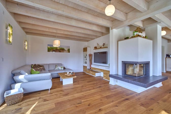 Und hier kommt uns jetzt das WZ und auch der Kamin etwas in die Quere. Denn müssen wir noch mehr ums Eck platzieren. Die Lösung hier gefällt uns richtig gut, wobei wir ein etwas kleineres/einfacheres Modell ins Auge gefasst haben: