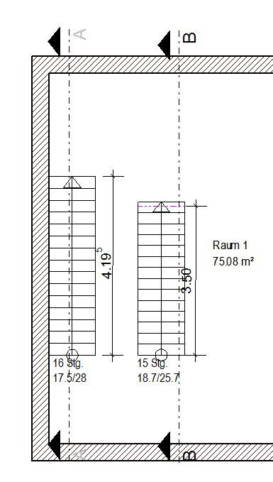 Treppenlängen bei Geschosshöhen von 280 cm, was heutzutage nicht sehr hoch ist und zu max. 250 cm hohen Räumen führt. Heute wird eher mit Geschosshöhen von 290 bis 305 cm gerechnet.