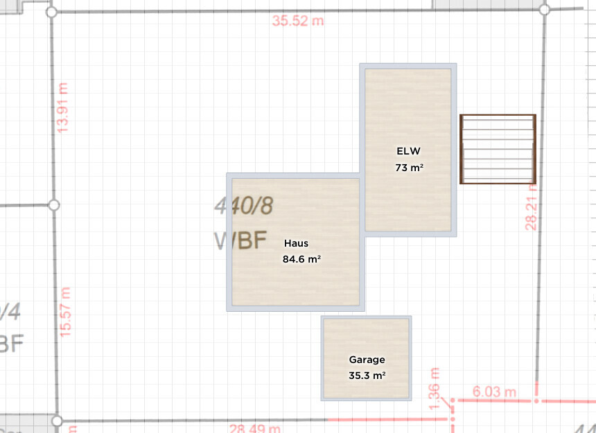 Deshalb würde ich eher erst einmal mit Schablonen das Grundstück abstecken. Zb so oder auch anders, muss man halt mal mit Typenhäusern abgleichen: