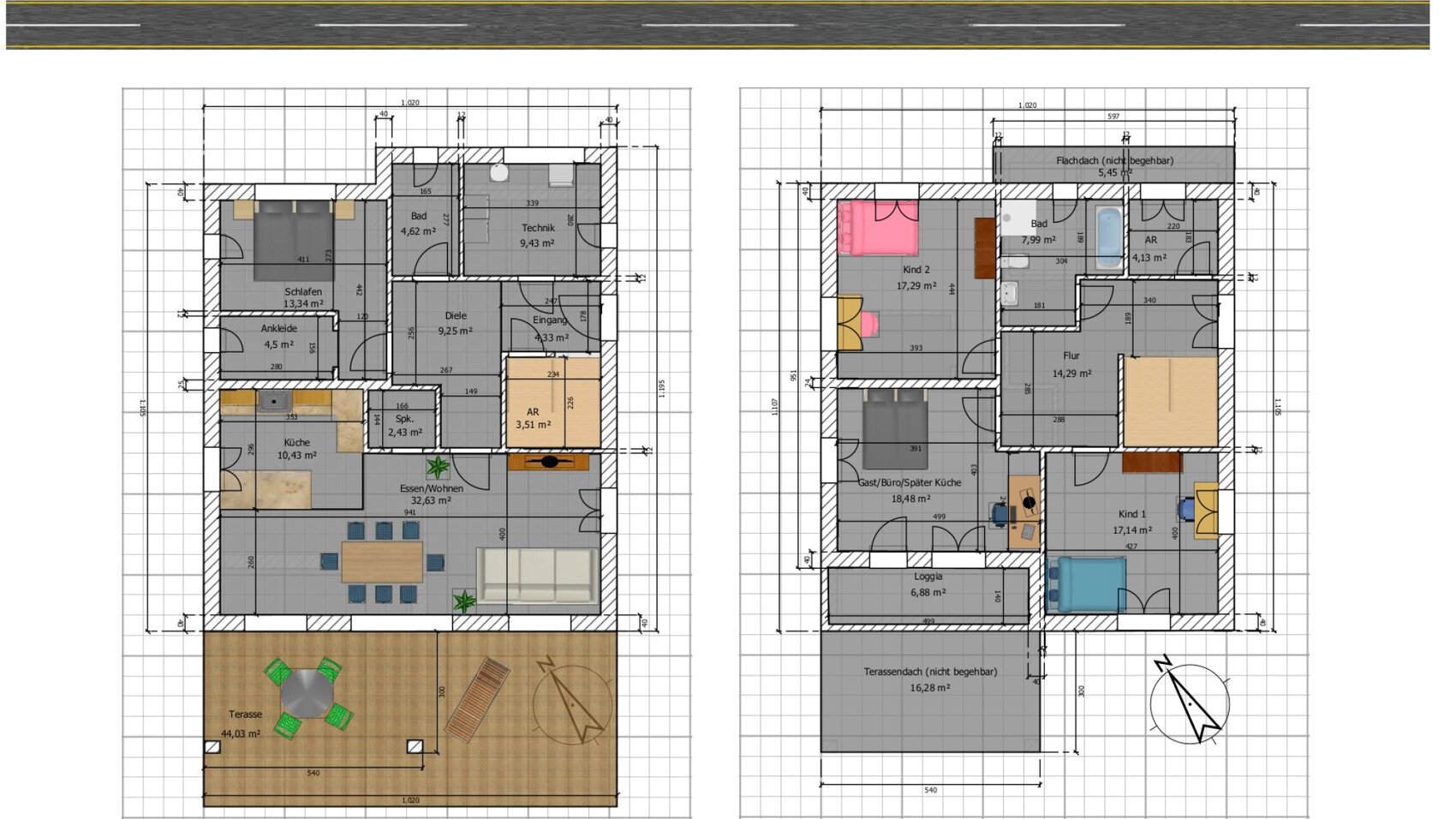 Ausrichtung Straße im Norden, Terrasse zum Süden