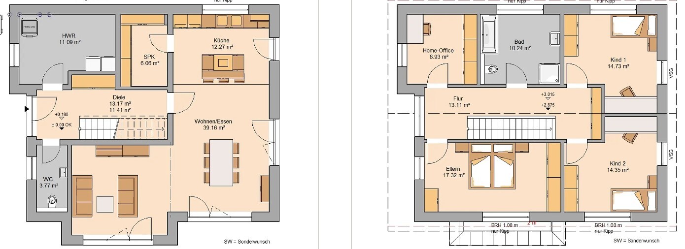 Wir sind mit allem super zufrieden bis auf den Umstand, dass das Kind II Zimmer uns zu schmal geschnitten ist.
