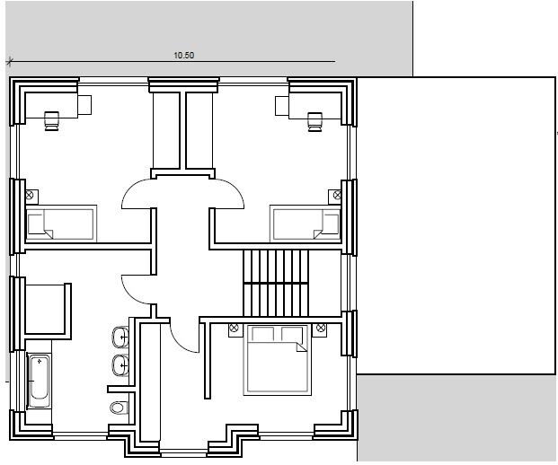 Wir haben uns übers Wochenende noch viele Gedanken zu unserem Grundriss gemacht. Wir möchten nun gerne bei den Außenmaßen 10,5 m x 11,0 m bleiben. Wir haben den bestehenden Grundriss nun noch einmal selber, nach unseren Vorstellungen, angepasst. Wir haben ein wenig mit anderen Treppenformen gespielt und sind zu dem angehängten Ergebnis gekommen. Das Gästezimmer ist entfallen ( nicht zwingen erforderlich ) und die Garage ist nach vorne gewandert ( könnte auch ruhig noch ein Stück nach vorne ). Wir sind uns hier noch etwas unsicher bzgl. der Deckenspannweiten.