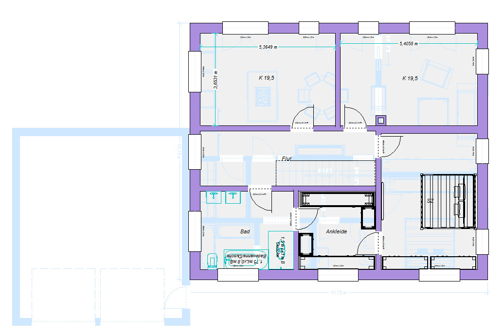 Dann klärt, warum er so wenig davon verstanden hat.So krass falsch find ich den Ansatz jetzt gar nicht. Im Grunde fehlte nur eine abgetrennte Garderobe und die Ankleide gefällt so nicht. Ersteres wurde vielleicht vergessen zu kommunizieren? Letzteres konnte er sicher auch nicht ahnen.Hier der letzte Entwurf als Stadtvilla, obwohl mir dabei das Herz ein wenig blutet. Die Kinderzimmer-Größe ist ein bissl kleiner als im Ausgang. Ich finde über 19m² aber immer noch reichlich.