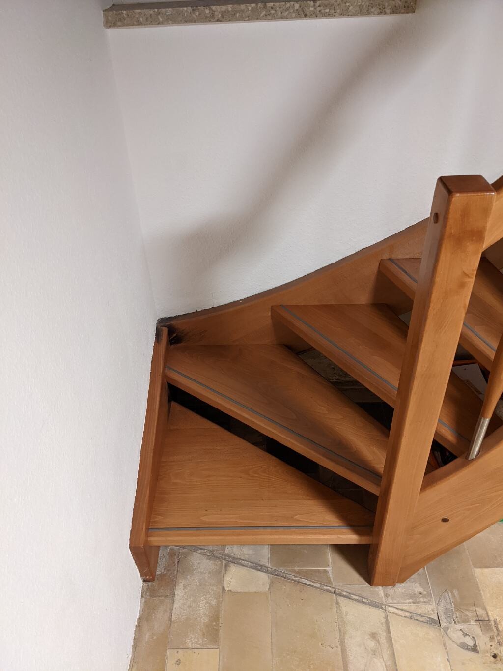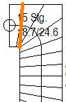 Ich kenne keine 1/4 gewendelten Treppen, die bereits am orangenen Strich aufhören, sondern sie gehen noch ca. eine Stufentiefe in die Austrittsrichtung