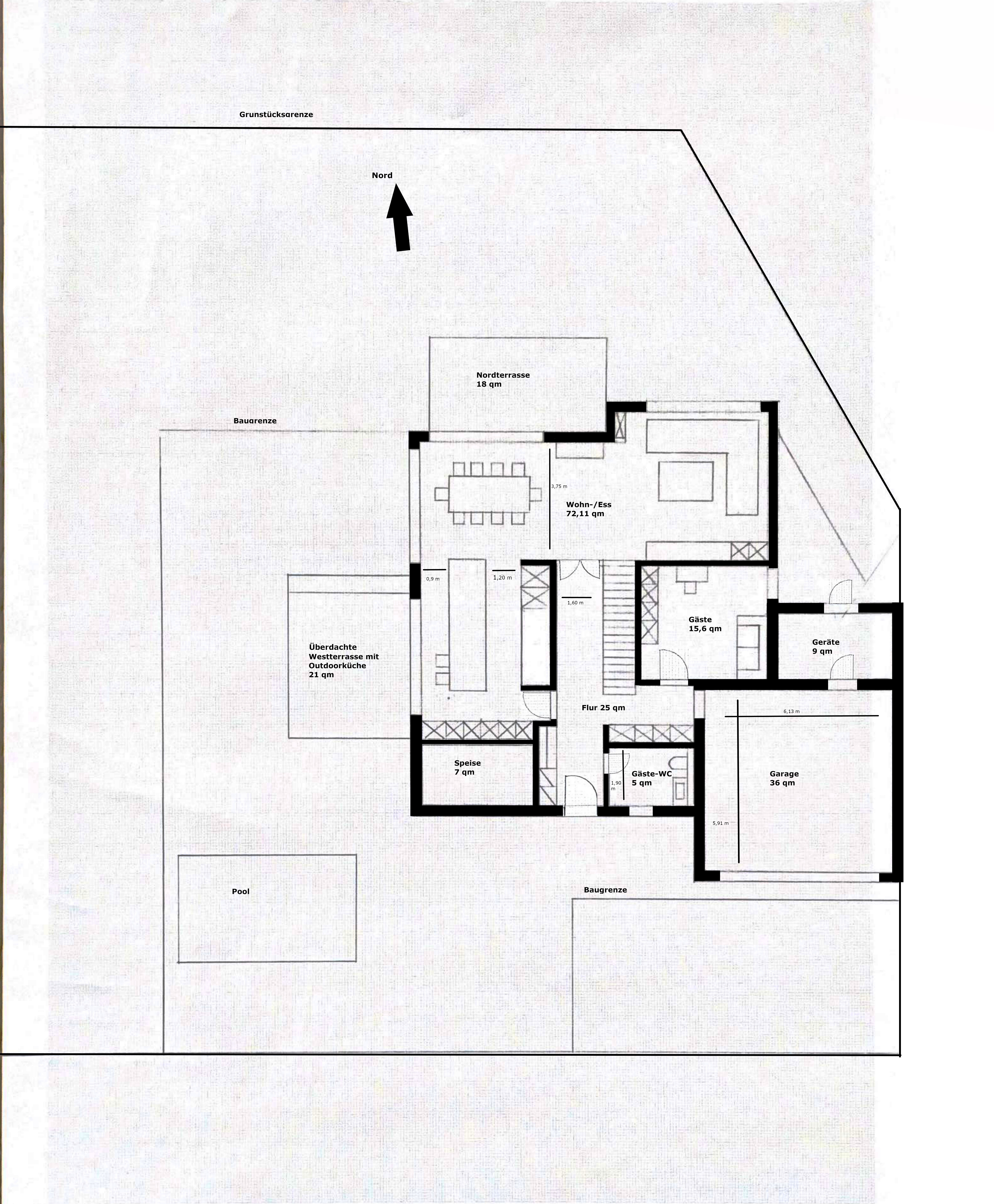 Ich wundere mich bei einer Planung auf Millimeterpapier - was ja eigentlich vernünftige nur Dezimetergenauigkeit nahelegt - über Maße wie "Zwometersieben". Als Blick über den Gartenzaun empfehle ich Dir den Thread von https://www.hausbau-forum.de/threads/efh-flachdach-waldrandlage-175-qm.30201/Es befindet sich ein paar Meter entfernt ein Waldspielplatz. Um Lärmkonflikte mit der Nachbarschaft zu vermeiden wurde die Grenze so gesetzt. Wir hoffen, dass eine Garage jedoch an diesem Platz unproblematisch sein sollte. Diese muss laut Bebauungsplan nämlich eigentlich innerhalb des Baufensters sein.